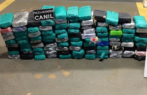Policiais Federais de Londrina, com apoio de Policiais Rodoviários Estaduais e do canil da Polícia de Choque (Choque Canil), apreenderam 108 kg de cocaína no posto da PRE em Rolândia no fim da tarde de terça-feira (6)