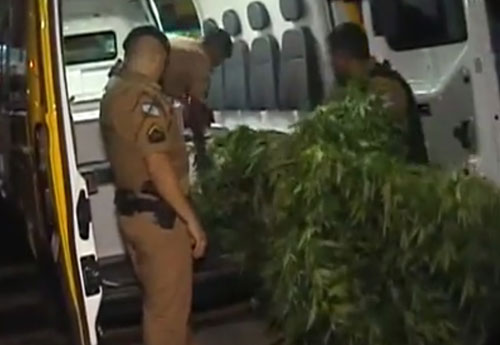 Alguns dos pés já estavam com cerca de 4 metros de altura. Foi necessário acionar uma van da Polícia Militar para levar todas as plantas apreendidas.