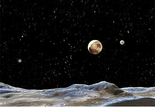 A NASA publicou novas imagens do planeta Plutão e Charon, a maior de suas cinco luas. As imagens foram feitas em janeiro pela espaçonave New Horizons, que estava a 200 milhões de quilômetros do planeta.