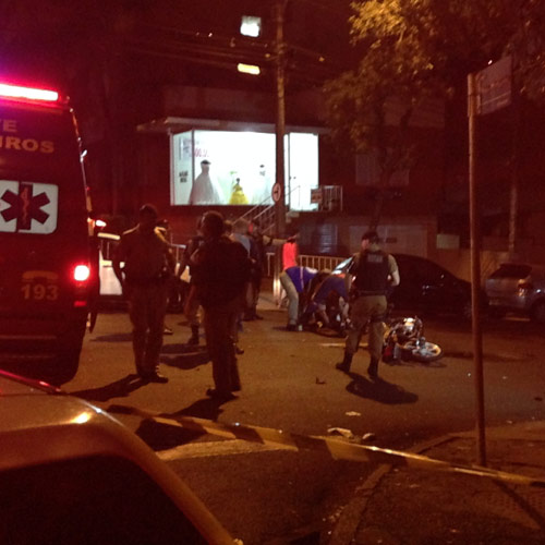 Acidente no centro de Londrina, no final da noite desta sexta-feira (1º), deixou duas pessoas mortas. Uma motocicleta e um automóvel bateram na rua Belo Horizonte, esquina com Sergipe, por volta das 23h30. Os dois ocupantes da moto morreram no local.