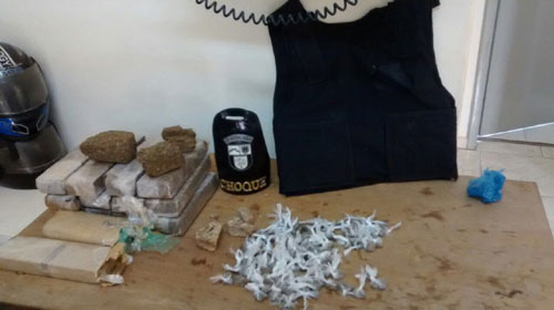 kg de maconha, 190 gramas de pasta base de cocaína e um colete à prova