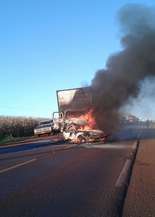 O carro de São Miguel do Iguaçu, conduzido por Marcelo Dionísio da Silva, 33 anos, teria rodado na pista e atingido o caminhão, que vinha em sentido contrário. Com o choque, o automóvel pegou fogo e ficou completamente destruído. As chamas também consumiram parte do veículo de carga.