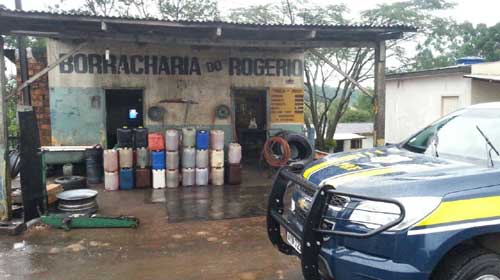 Os policiais rodoviários federais encontraram mais de 30 galões com capacidade de 25 a 50 litros cada, um tonel de 200 litros, além de mangueiras e funis plásticos. Conforme o homem, que trabalha como borracheiro no local, o combustível era retirado do tanque de caminhões de empresas, sem autorização delas, mas com o consentimento dos motoristas. Ele pagava de R$ 1 a R$ 1,25 por litro desviado, e revendia por R$ 1,75. O adolescente trabalha como auxiliar na mesma borracharia. Ambos foram enquadrados no artigo 56 da lei 9.605, conhecida como Lei de Crimes Ambientais. O artigo prevê reclusão de um a quatro anos a quem guarda ou comercializa substância tóxica ou perigosa em desacordo com as normas em vigor.