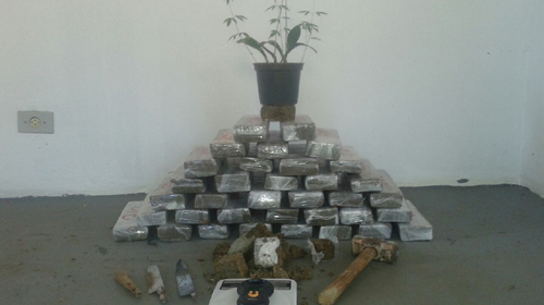 Policiais militares da 4ª Companhia Independente apreenderam 25,5 quilos de maconha na rua Ana Domingues Molina, no Residencial Tibagi, zona norte de Londrina, na manhã desta quarta-feira (21).