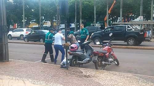 Tudo aconteceu depois de os agentes flagrarem a motocicleta da mulher estacionada irregularmente na avenida e, posteriormente, chamarem um guincho para levar o veículo. Inconformada com a autuação, a motociclista teria partido para cima dos fiscais.