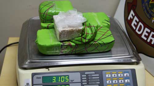 De acordo com a PF, os agentes perceberam o nervosismo da passageira e resolveram revistá-la. O entorpecente estava preso junto ao corpo, sob suas roupas, por uma cinta de pressão. Divulgação/PFAos policiais, a jovem disse que a droga já tinha comprador e que este a aguardava no Distrito Federal. A substância foi recolhida e a passageira encaminhada à delegacia de Polícia Federal de Foz do Iguaçu.  bonde.comDivulgação/PF