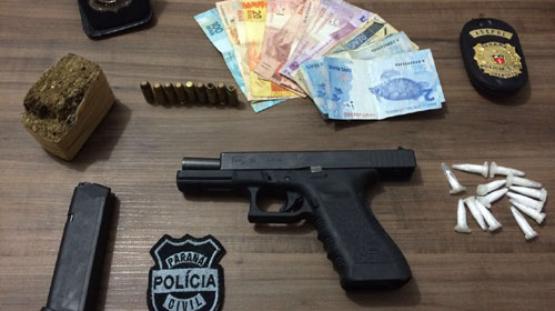 De acordo com a polícia, foram encontrados 13 pinos de cocaína, um tablete de maconha, R$ 300 em dinheiro trocado e uma pistola calibre .40 de uso restrito no interior da casa onde Willian José Tavares Moreira vivia com sua mãe, Salete Tavares, e sua esposa, Priscila Silveira Matos.