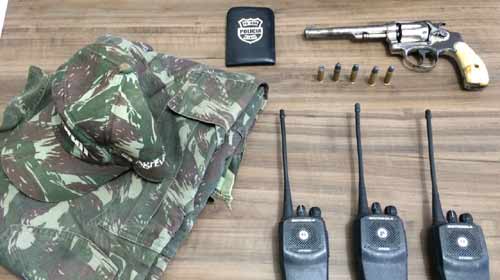 Nesta madrugada, os policiais civis cumpriram mandados de busca e apreensão em duas residências de propriedade José Valdinei Ramílio, de 24 anos, que também foi levado para a delegacia do município. Ele foi preso no imóvel onde atualmente morava, na região central de Ortigueira. Na outra casa, na área rural, os agentes localizou três rádios-comunicadores, uma arma de fogo e uma roupa camuflada do Exército brasileiro.