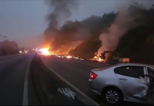 Às 21h, o fogo já havia sido controlado e uma pista do sentido Paranaguá foi liberada para o tráfego de veículos. No lado que leva a Curitiba, no qual aconteceu o acidente, o trânsito está completamente interditado e deverá demorar para voltar a fluir.
