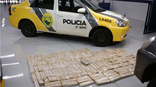 A Polícia Militar de Londrina apreendeu na tarde desta quarta-feira (7) mais de cem quilos de maconha escondidos em um Toyota Etios pertencente a uma locadora de veículos, que foi rebocado de Umuarama, onde permaneceu abandonado em um posto de combustíveis por cerca de 20 dias. Os pacotes de droga só foram encontrados quando retiraram o forro das portas para fazer outras cópias das chaves.