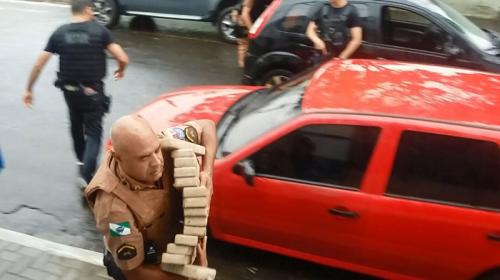 Os veículos foram interceptados por volta das 9h. Um veículo Gol seguia na frente como batedor para um Fiesta, que trazia os tijolos de maconha no porta-malas e no banco traseiro, sem qualquer compartimento falso para tentar esconder o carregamento ilícito. "Como a noite foi chuvosa, eles não se preocuparam e trouxeram a droga à vista, achando que não seriam parados em nenhuma fiscalização", afirma o capitão Berberti, comandante da PM. A suspeita é que as drogas foram trazidas do Paraguai.
