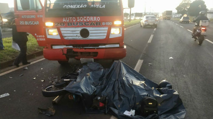 Uma mulher de 41 anos morreu no início da manhã desta segunda-feira (10) perto do cruzamento da avenida Brasília, trecho urbano da BR-369, com a Rio Branco. A vítima estava em uma moto e bateu contra um guincho que estava na pista para rebocar outro veículo que tinha furado o pneu.