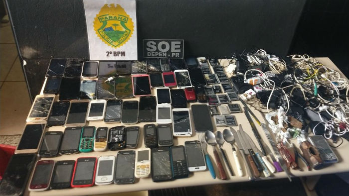 Após a retirada dos presos, as celas foram vistoriadas e foram encontrados 50 celulares, 59 baterias de celular, 38 carregadores de celular, 14 fones de ouvido, uma serra de cortar aço, sete facas, uma chave de fenda, uma marreta, duas limas de amolar, um alicate, quatro talheres de aço e uma balança de precisão.