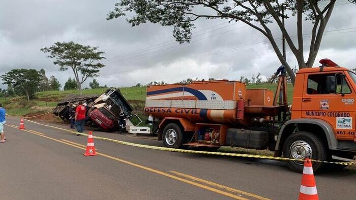 Duas pessoas morreram em um acidente no km 55 da PR-463, no município de Colorado (Noroeste) na manhã desta sexta-feira (3), por volta das 9h30. Segundo informações da PRE (Polícia Rodoviária Estadual) um GM/Celta que vinha sentido Santo Inácio (região metropolitana de Maringá) - Colorado colidiu frontalmente com um caminhão Scania/T112. Eles trafegavam em sentidos opostos.A motorista do GM/Celta, de 37 anos, e um passageiro, ainda não identificado, morreram na hora do acidente. Ambos os corpos foram encaminhados ao IML (Instituto Médico-legal).O condutor do caminhão, de 60 anos, teve apenas ferimentos leves.