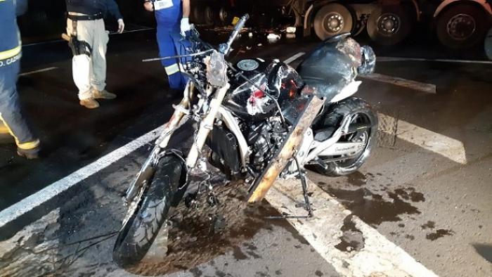 Dois rapazes morreram na noite desta quinta-feira (13) no km 187 da BR-176, no trecho entre Sarandi e Marialva (região metropolitana de Maringá) após se envolverem em um acidente de trânsito. Eles estavam em uma motocicleta que foi atingida por uma carreta, por volta das 19h50.    Segundo a Polícia Rodoviária Federal, os rapazes estavam em uma Honda CB/600 Hornet, trafegando de Sarandi a Marialva, quando foram atingidos por uma carreta que trafegava no sentido contrário e tentou fazer um retorno.